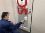 エレベーター、ドアノブ、窓、トイレなどを重点的にAT254でコーティング。