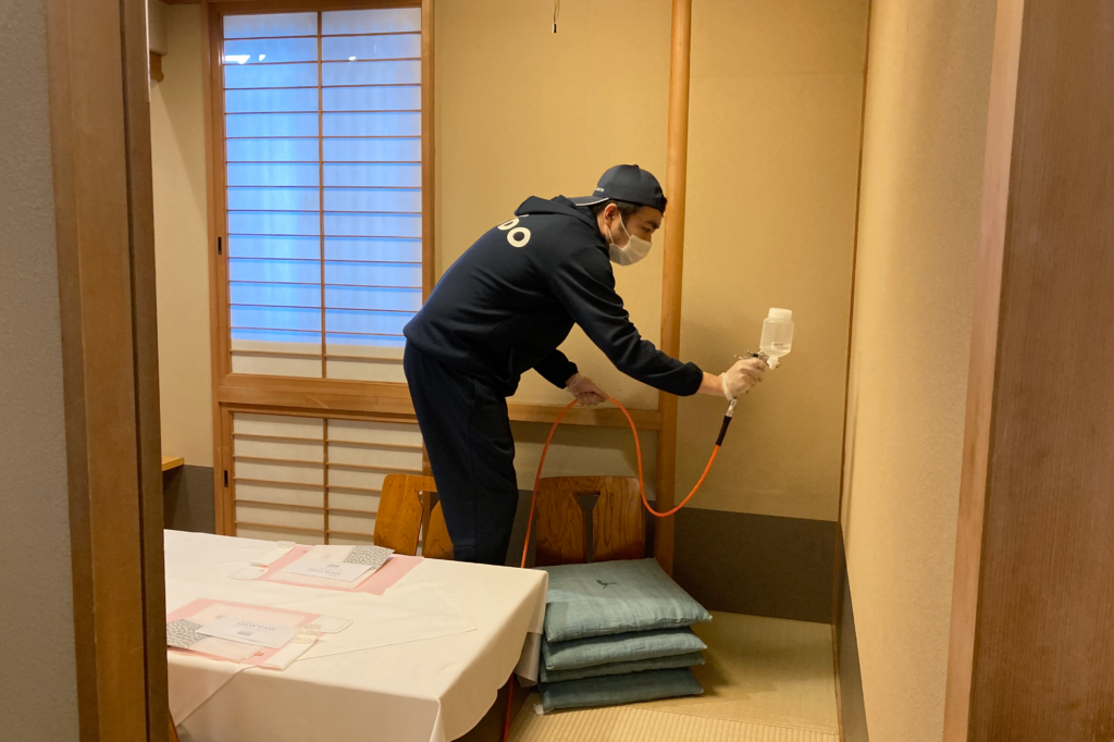 お客様が安心して来店できるようテーブル、壁などをコーティングしています。